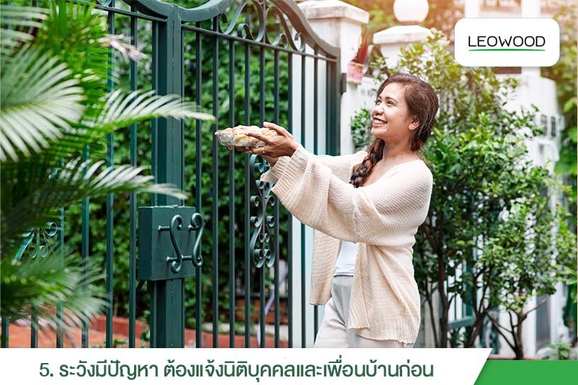 เอาใจเขามาใส่ใจเรา หากมีการก่อสร้างอยู่ใกล้บ้านเรา ส่งเสียงรบกวนและมีฝุ่นเกิดขึ้นมากมายโดยที่เราไม่รู้ล่วงหน้า ตัวเราเองก็คงไม่พอใจและไม่มีความสุขในขณะอยู่บ้าน เช่นเดียวกัน การต่อเติมบ้านของเราอาจส่งผลกระทบกับเพื่อนบ้านได้ นอกจากจะผิดกฎหมายแล้ว ยังทำให้เกิดปัญหากับเพื่อนบ้านได้ด้วย ในบางหมู่บ้านมีกฎระเบียบและข้อต้องลงอยู่ในสัญญา ดังนั้น ควรแจ้งนิติบุคคลและเพื่อนบ้านของคุณให้ทราบล่วงหน้า เพื่อให้เพื่อนบ้านและหมู่บ้านได้เตรียมตัวก่อน อีกทั้งช่วยป้องกันการเกิดปัญหาตามมาภายหลัง